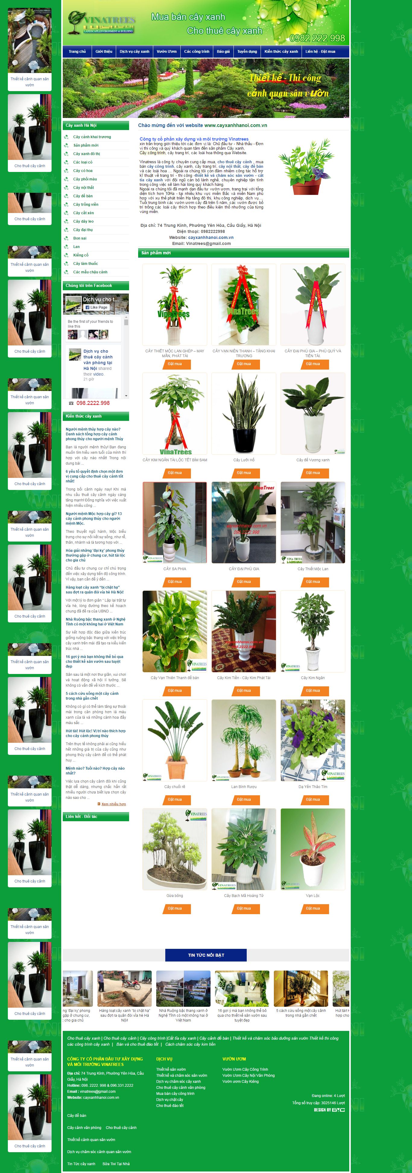 Thiết kế Website cây cảnh nhà vườn cayxanhhanoi.com.vn là điều kiện cần để doanh nghiệp cây cảnh nhà vườn có thể quảng bá website cây cảnh nhà vườn của mình đến khách hàng quan tâm tới cây cảnh nhà vườn một cách nhanh và hiệu quả. Công ty VietAds luôn có chính sách báo giá dịch vụ thiết kế web cây cảnh nhà vườn chất lượng giá tốt nhất.