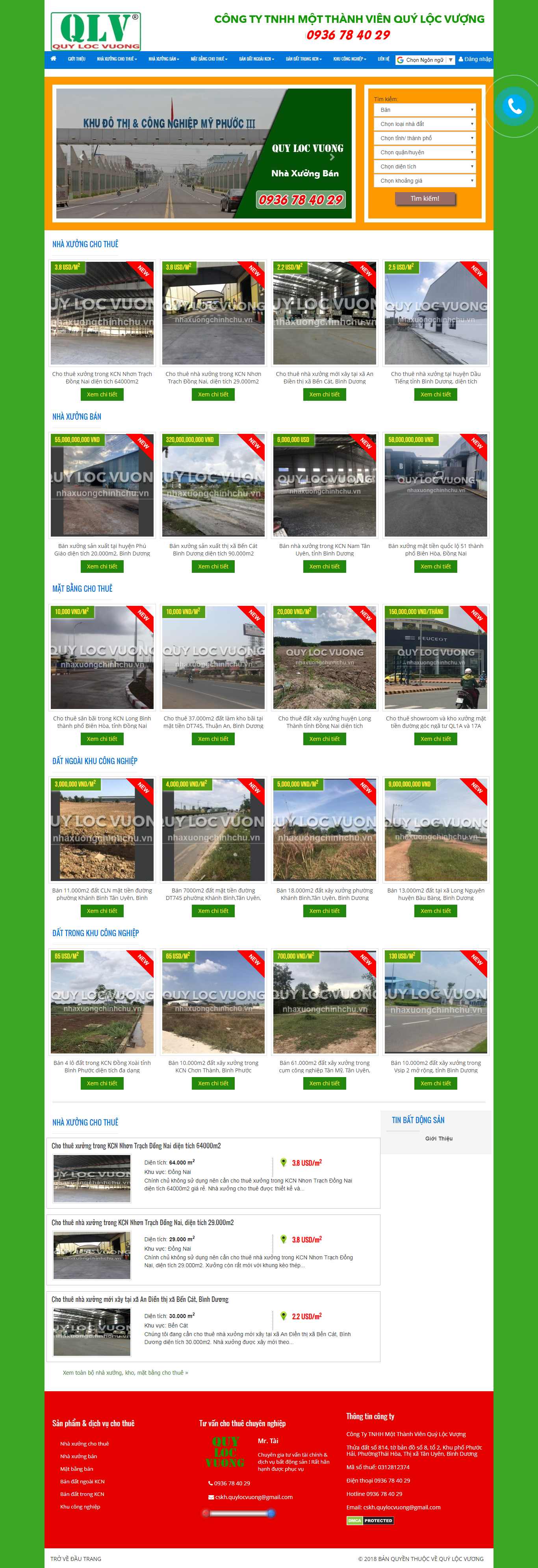Thiết kế Web cho thuê nhà xưởng, kho bãi - nhaxuongchinhchu.vn