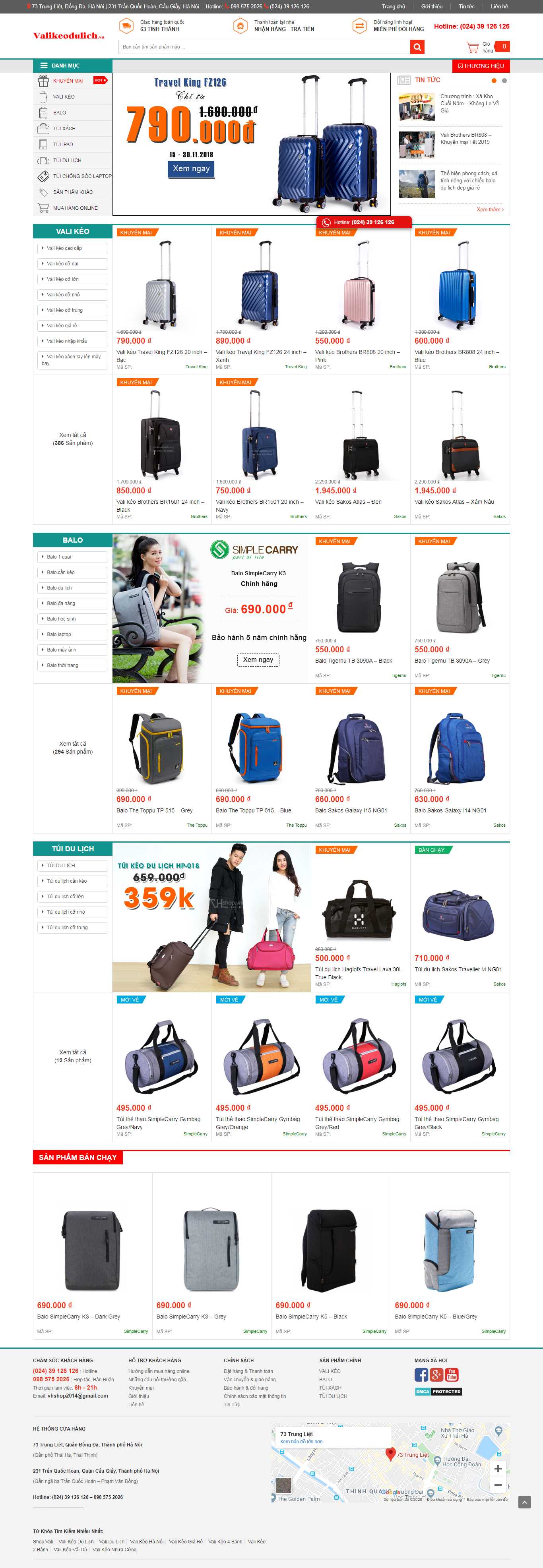 Thiết kế Web cửa hàng vali - valikeodulich.vn
