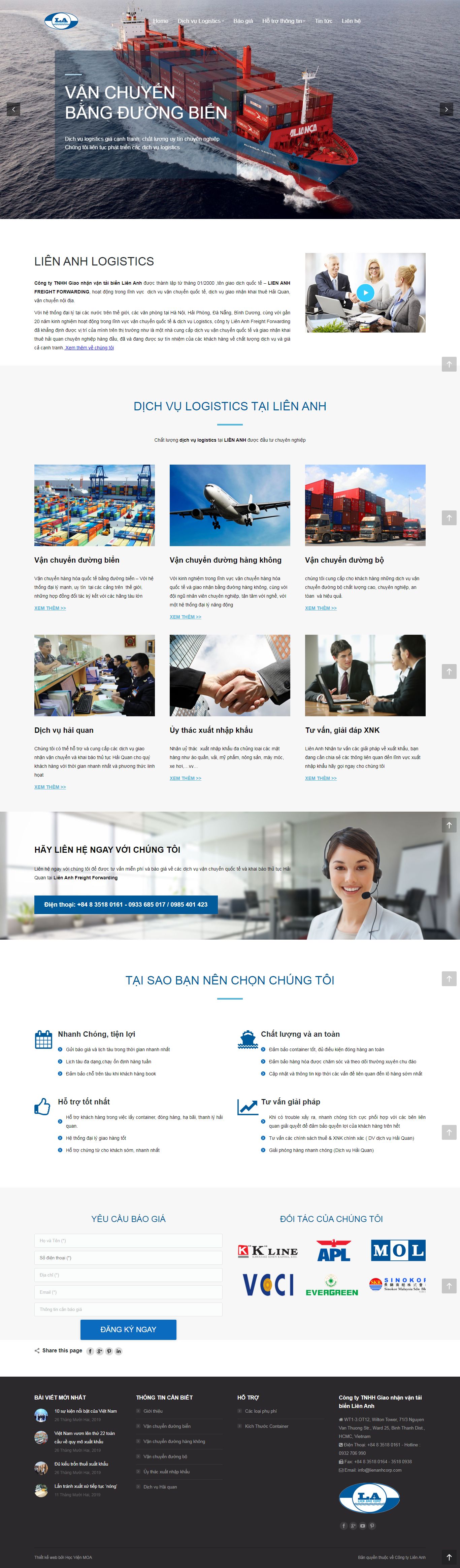 Thiết kế Website xuất nhập khẩu lienanhcorp.com là điều kiện cần để doanh nghiệp xuất nhập khẩu có thể quảng bá website xuất nhập khẩu của mình đến khách hàng quan tâm tới xuất nhập khẩu một cách nhanh và hiệu quả. Công ty VietAds luôn có chính sách báo giá dịch vụ thiết kế web xuất nhập khẩu chất lượng giá tốt nhất.