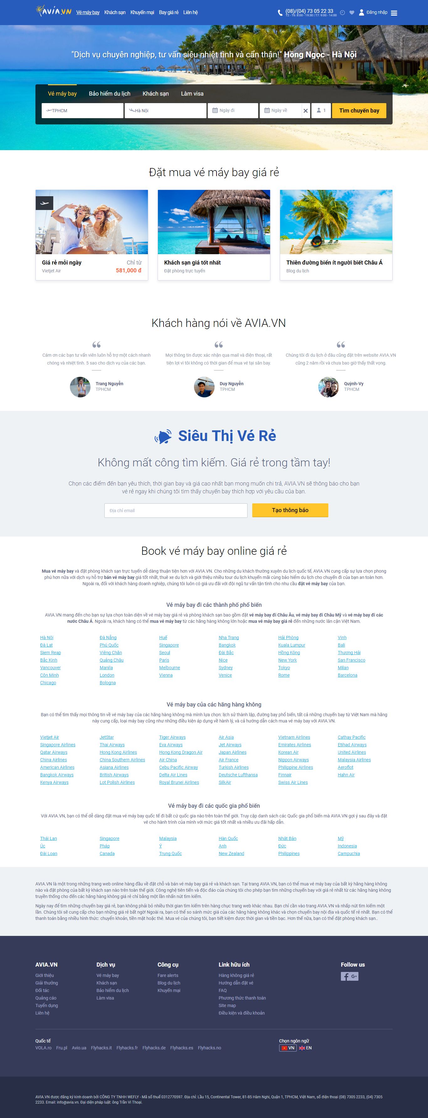 Thiết kế Website vé máy bay travel avia.vn là điều kiện cần để doanh nghiệp vé máy bay travel có thể quảng bá website vé máy bay travel của mình đến khách hàng quan tâm tới vé máy bay travel một cách nhanh và hiệu quả. Công ty VietAds luôn có chính sách báo giá dịch vụ thiết kế web vé máy bay travel chất lượng giá tốt nhất.